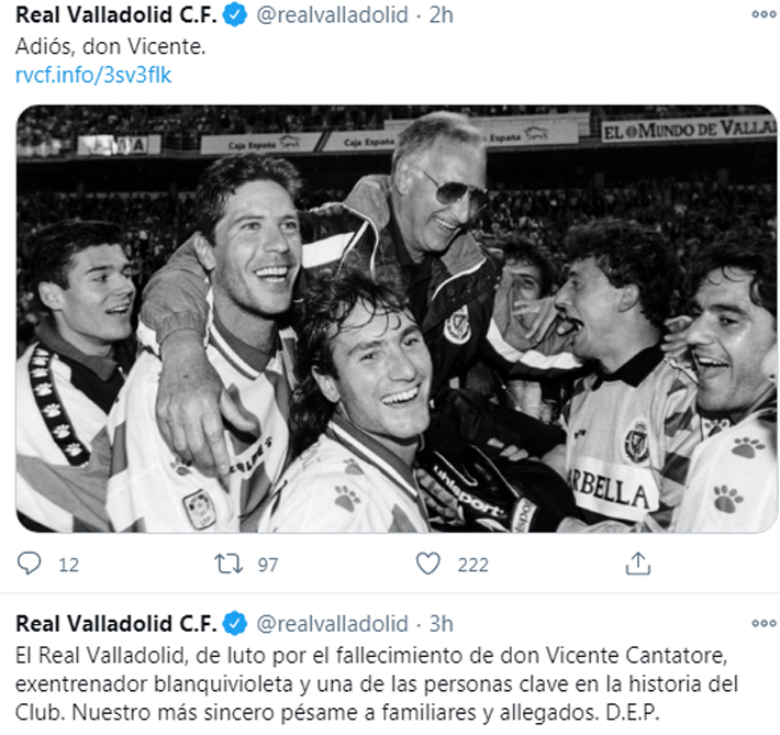 El exfutbolista y exentrenador argentino nacionalizado chileno vicente cantatore, el técnico con el real valladolid, de luto por el fallecimiento de don vicente cantatore, exentrenador blanquivioleta y.